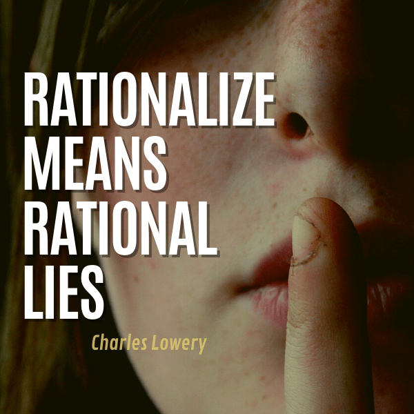 Psychologist Charles Lowery says this: “Rationalize means Rational Lies.”*
