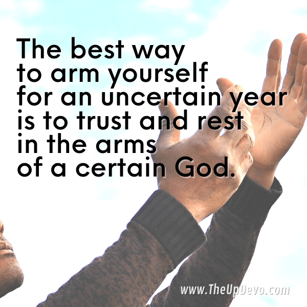 The best way to arm yourself for an uncertain year is to trust and rest in the arms of a certain God.