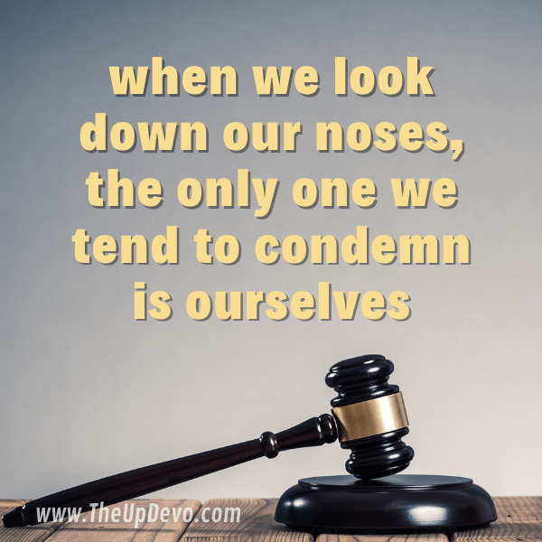 When we look down our noses, the only one we tend to condemn is ourselves.